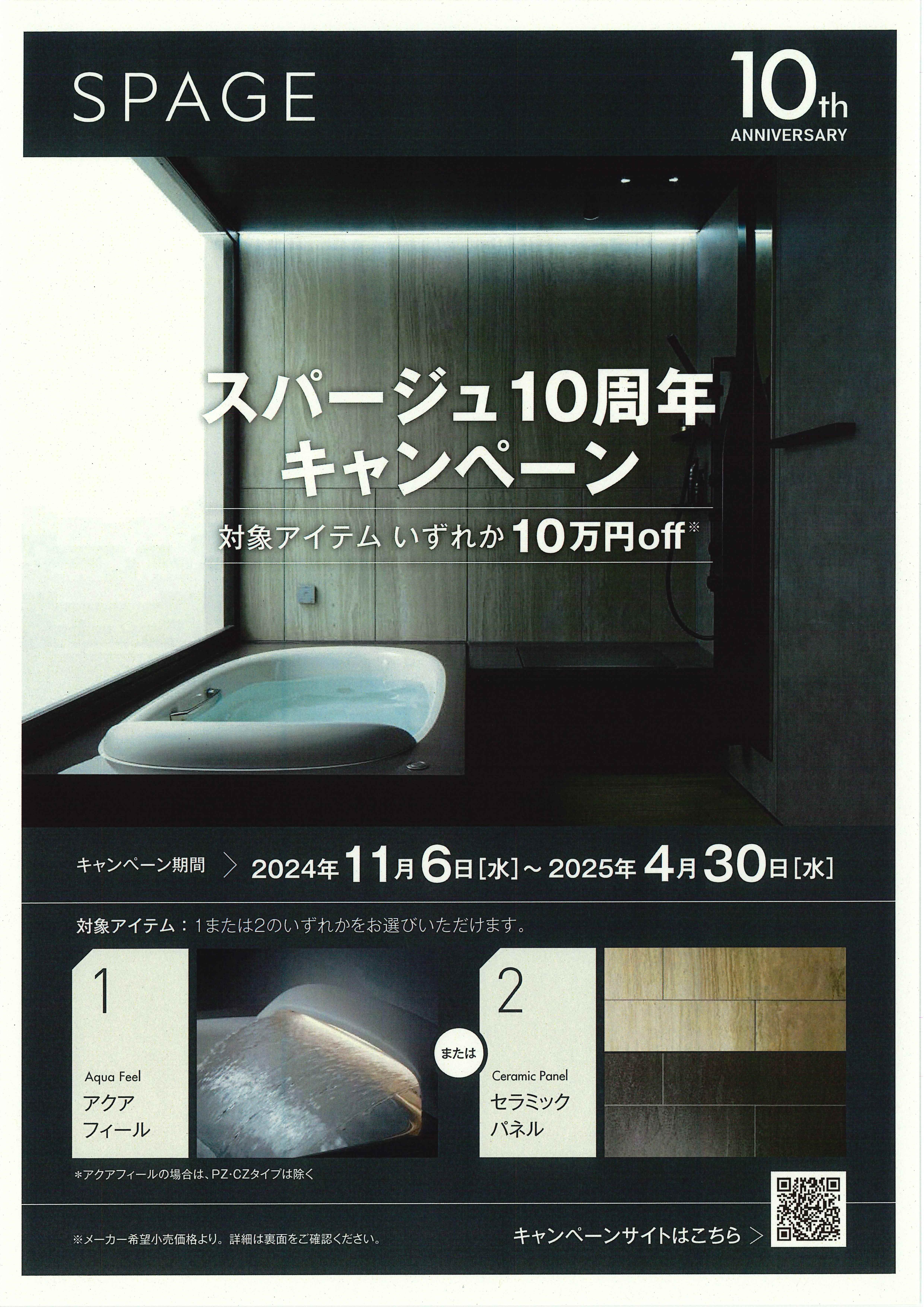 スパージュをご成約いただく際、人気アイテムの『アクアフィール』『セラミックパネル』いずれかをお選びいただきますと、もれなく10万円割引きとなるキャンペーンをを実施しています。