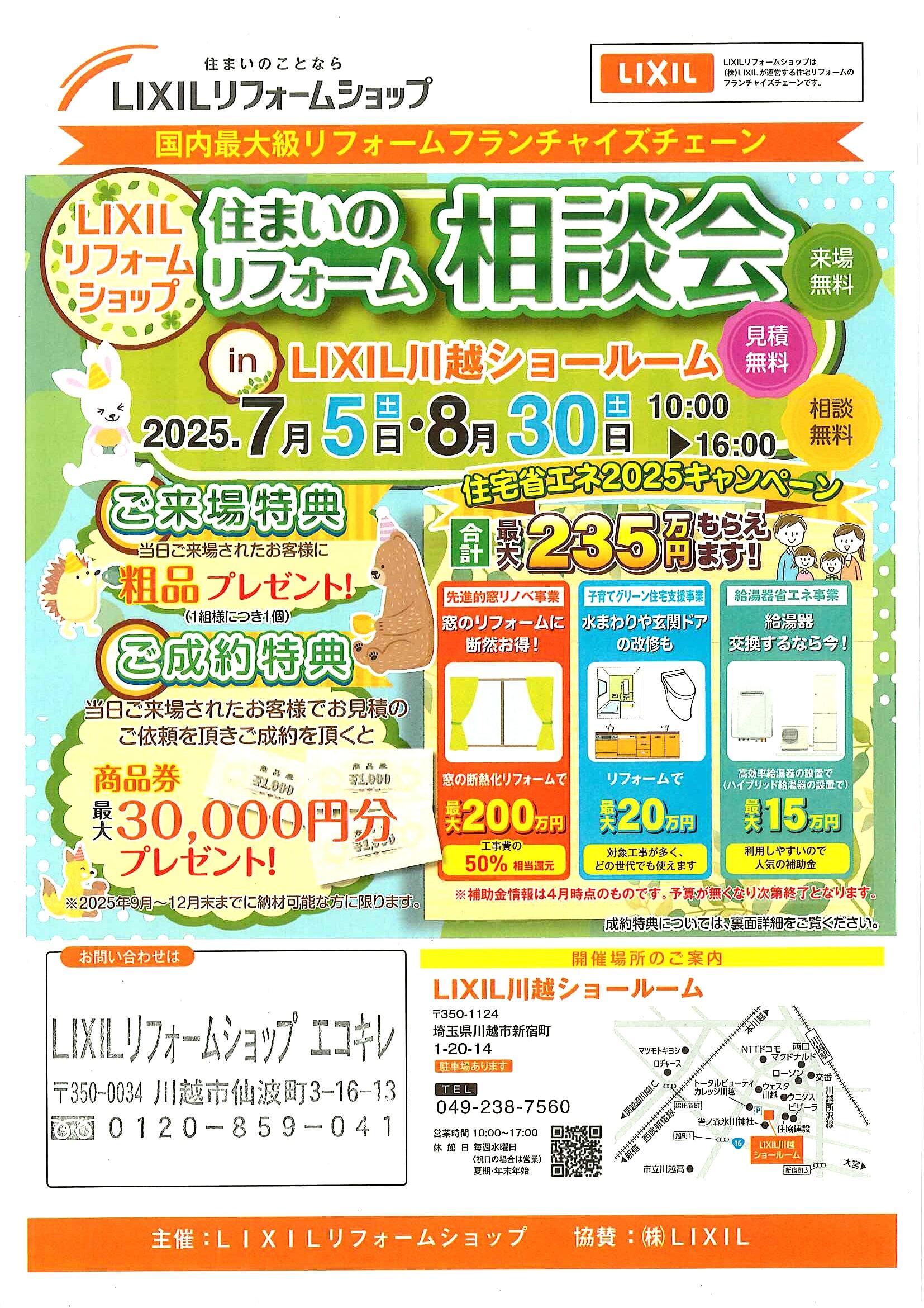 LIXIL川越ショールームにて「住まいのリフォーム相談会」を開催いたします。