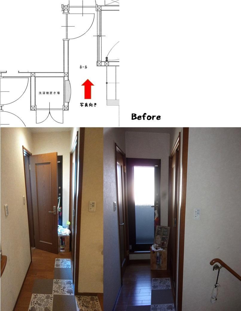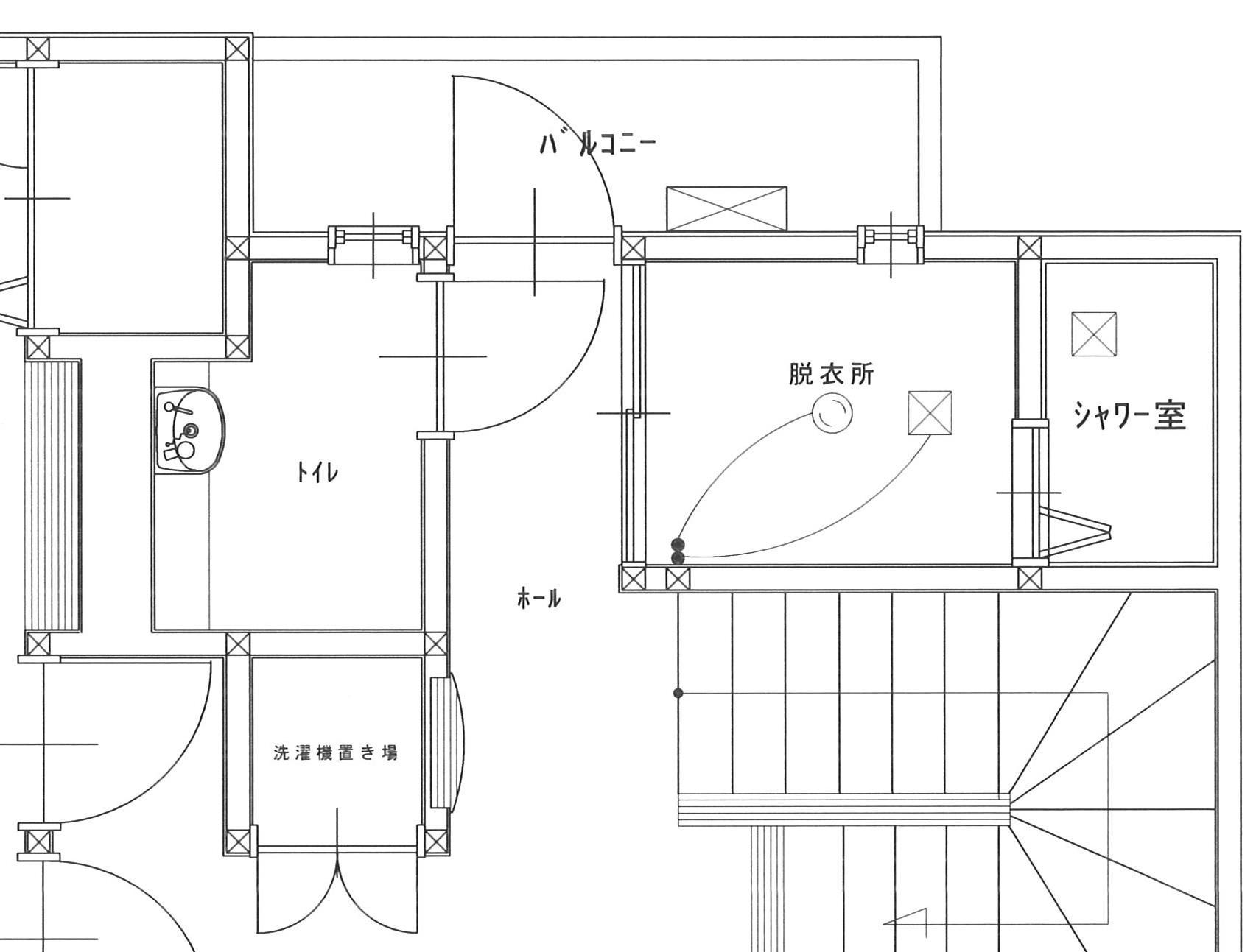 施工前は階段を上がってすぐトイレから出るドアと洗面+シャワールームから出る引戸とベランダの出入り口と人の行き来がとても慌ただしく感じられるスペースになっていました。プライベートな空間をしっかり確保し、なおかつもう少しゆったり機能的な空間にリフォームしました!