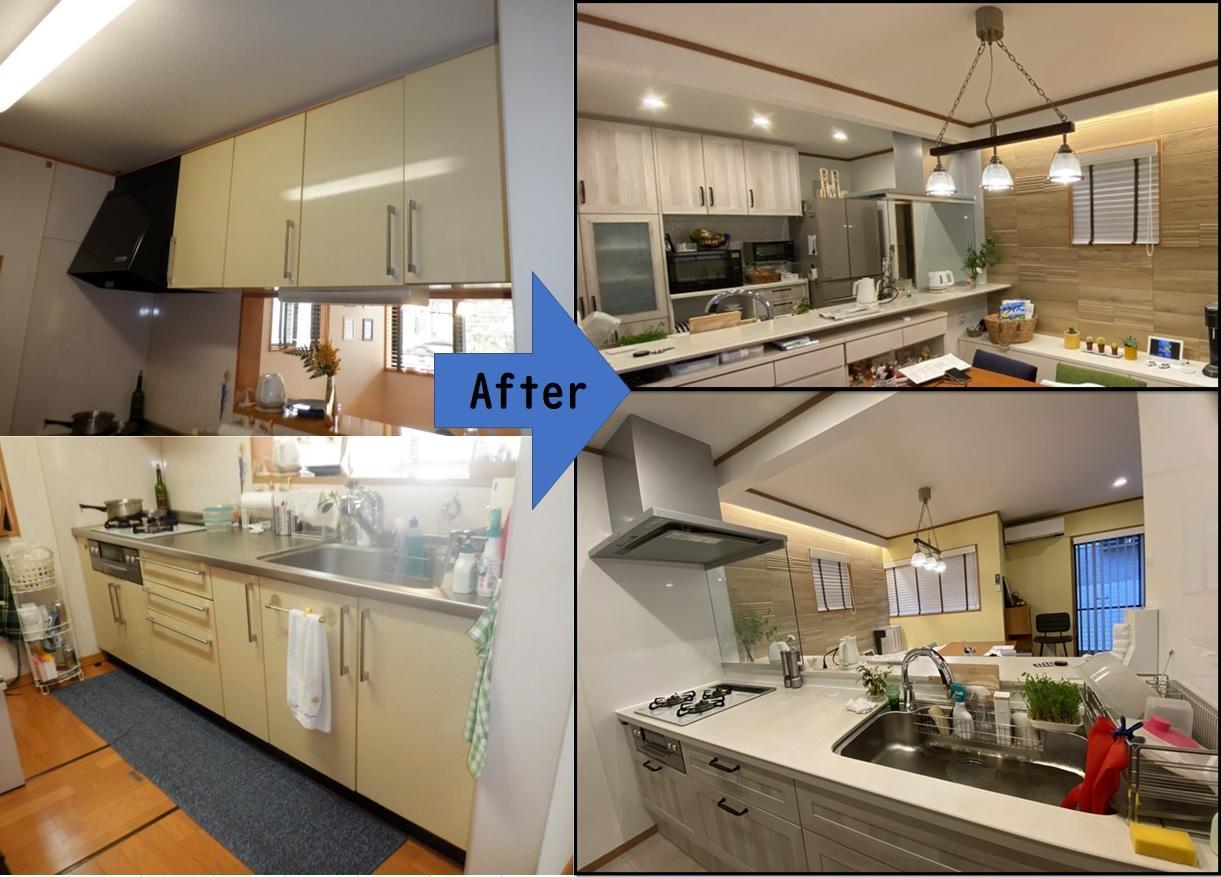 ≪ Before ≫施工前のキッチンは対面I形のキッチンでしたが壁がある分少し閉鎖的でリビングからの光も壁がさえぎっていました。≪ After ≫【採用キッチン】『LIXILリシェルSI』(色:ホワイトオーク)「料理を楽しむキッチン」をコンセプトに作られたシステムキッチンリシェルSIシリーズ。さまざまな空間やインテリアへ柔軟に対応できる多様なバリエーションによりお客様の要望を多く取り入れることが出来るキッチンです。奥様のご要望通り、キッチンとダイニングの壁を取り除くことで開放感のあるLDKに生まれ変わりました。背面もLIXILのカップボードを採用していただき明るいキッチンになりました♪料理を作りながら楽しい会話がはずみそうです♪