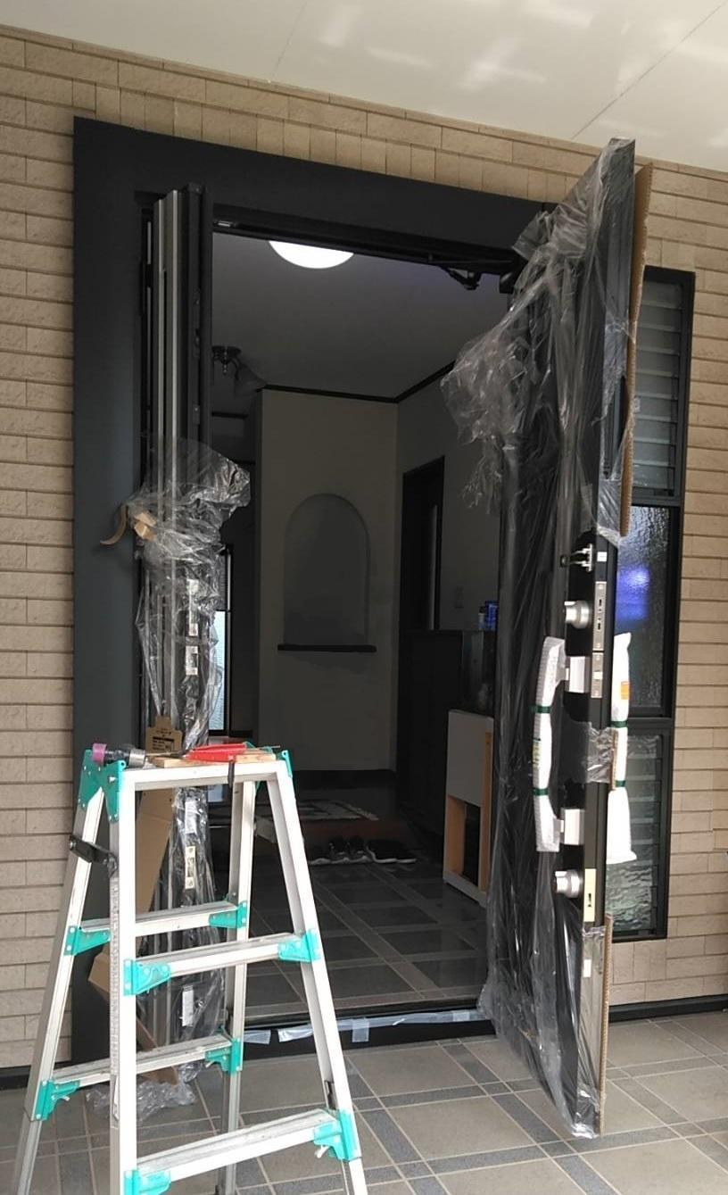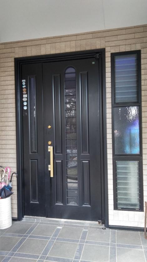 ≪ Before ≫施工前もとても重厚感のある素敵なドアでした。ですが、開き戸の開閉に欠かせないヒンジ(蝶番)が壊れてしまい、LIXILの最新機能玄関ドア『リシェント』をご採用頂きました。