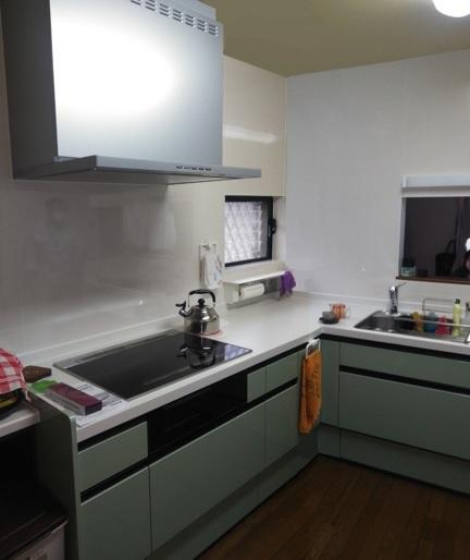 天井のクロスなど色のバランスも良くしていただきキッチンが明るくなりとても綺麗な仕上がりになりました。