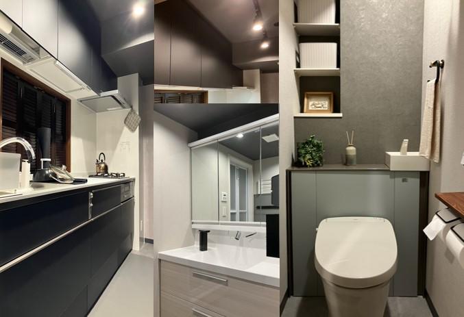 T様、弊社をご利用いただきありがとうございます。 こちらからのアドバイスが不要なくらいお客様のイメージが完成しており、特に壁クロスの色使いのバランスが良くとても勉強になりました。天井・アクセントクロス:黒系、壁クロス:薄いグレー、床:グレー、各部屋統一し、お客様のイメージを再現させていただきました。アクセントクロスを使用する事により単色では出ない表情が出ててお客様の選ばれた小物もマッチしてどの空間も素敵な仕上がりになりました。また機会がございましたら是非よろしくお願いいたします。ありがとうございました!