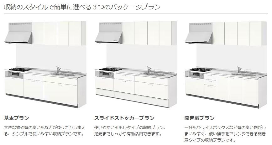 『シエラ』は簡単プランニングのできるキッチンです。収納機能で選べる3つのパッケージがございます。あれこれ悩まず決められます♪