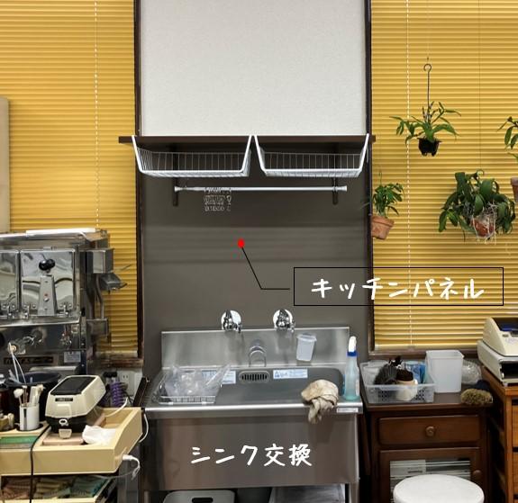 シンクの交換の際に既存タイルも撤去させていただきました。タイルを撤去した後に取り付けたのは『キッチンパネル』です。当社の水まわり施工例でこのキッチンパネルは度々登場しますが、水回り付近の『水はね』『水垢』『汚れ』など手入れがとても簡単でササっときれいに出来るのでとてもおすすめです!