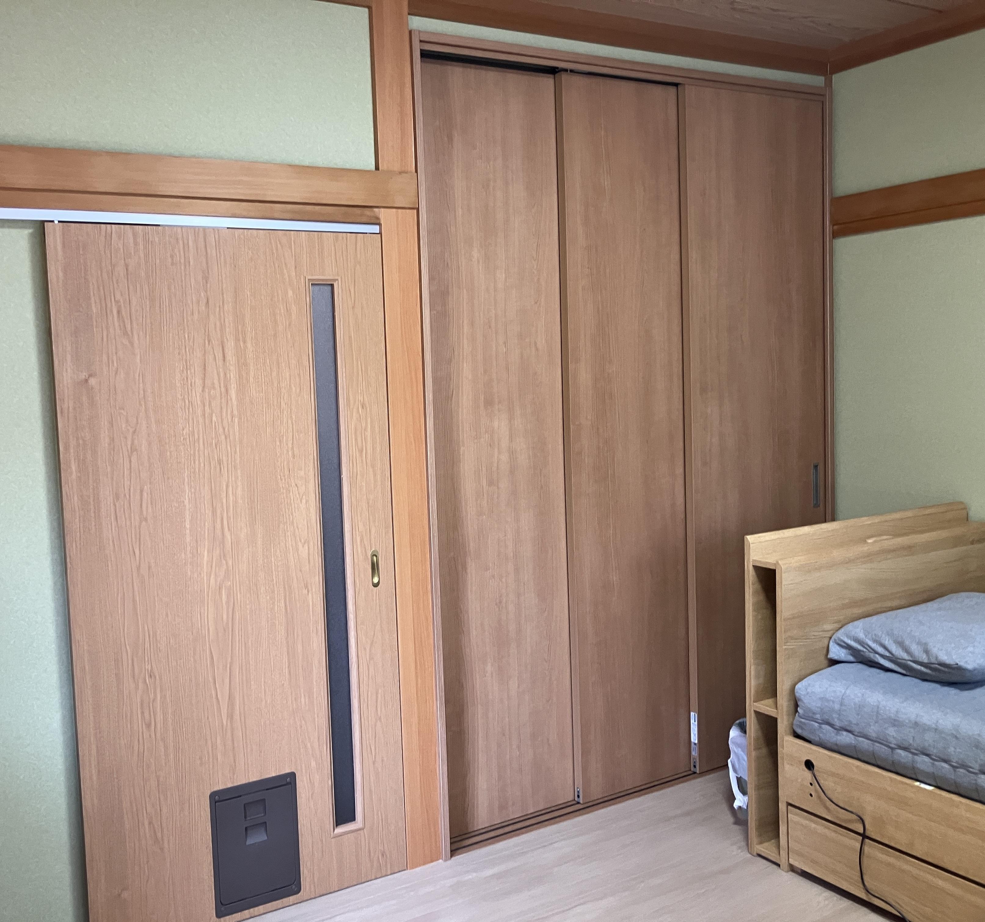 可愛い愛猫の為に『ペットくぐーる』も施工させていただきました。引戸に付けられるタイプなので自由気ままな猫ちゃんにはピッタリの商品です♪