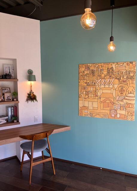 裏面にマグネットが貼ってありますので番号を確認し、水平器でチェックしながらライファスタッフがペタペタと貼って完成しました。施工時間は約1時間。女性スタッフも参加しましたが簡単に施工することができました♪エメラルドグリーンの壁にきれいに貼ることができました!今回使用したエコカラットデザインは『アール・ブリュット(障害のあるアーティストの作品)』を採用させていただきました。他に植物の写真や風景写真など年々バリエーションが増えております。どれも素敵な作品で選ぶのが大変です。インテリアとしてだけではなく、機能性商材として『エコカラット』はとても優れた商材で、臭い、有害物質、湿度の調整など壁に貼ることでそれらを防ぐことができます。また地震など落ちないか不安になると思いますが、阪神淡路大震災同等の揺れでも落下しないことを確認しています。