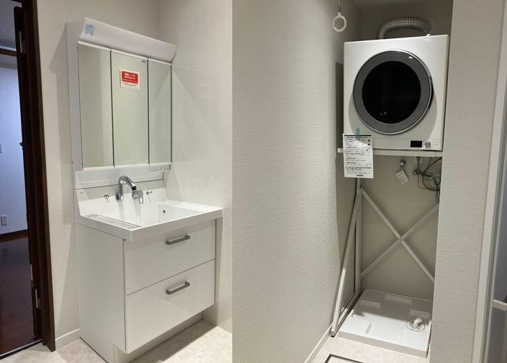 【採用洗面化粧台+乾太君】『LLIXIL ピアラ』W750(カラー:プレーンネオホワイト)『乾太君』RDT-63新しく新設させていただいた『ピアラ』はLIXILの人気洗面化粧台です。シンプルで家事の効率が上がる洗面化粧台です。多くのユーザーが評価している点は「手入れのしやすさ」です。ピアラの継ぎ目のないボウルはフチがすくないので汚れが溜まりにくく普段のお手入れも簡単に出来ます。リンナイ乾燥機『乾太君』は最近需要が伸びています。生乾きや、花粉などアレルギー物質の付着を防ぐことが出来、さらにコストも面でも電気代よりガス代(都市ガス)の方が低コストで乾かすことが出来ます。どんな悪天候でも約1時間で洗濯が完了します。電気代が高騰している今『乾太君』が注目されています♪