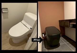 【採用トイレ】『LIXIL サティスX』 (カラー:ノーブルブラック)『LIXIL トイレ手洗い キャパシア/セミフロートキャビネットプラン』(カラー:FAJR)