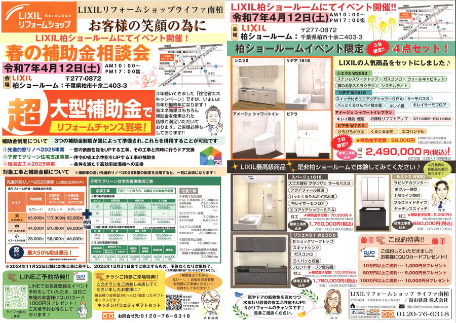 LIXILのショールームでの相談会なので実際に見て・触ってより良い商品を選ぶことが出来ます。「住宅省エネ2025キャンペーン」がよく分からないとお思いのお客さまも是非イベントにご来場ください!スタッフが丁寧に説明させていただきます。