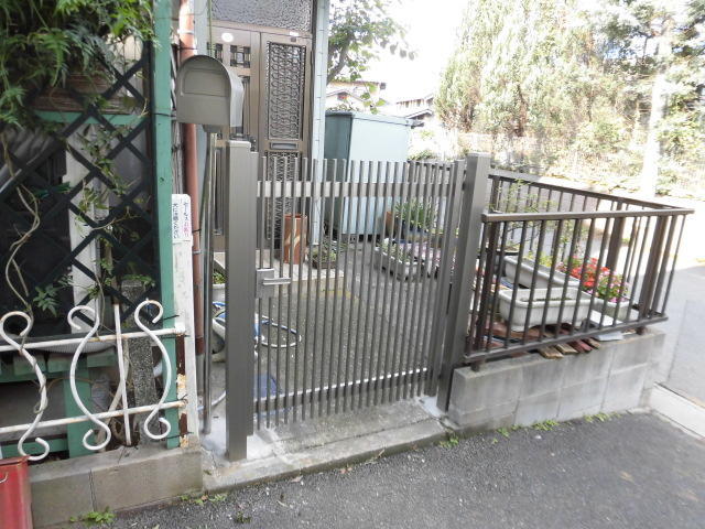 門扉とポストのリフォームを依頼され、ポール建てタイプのポストと片開き門扉に組み合わせました。