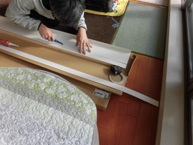 マンションの南側ベランダの窓枠の表面が日光で傷んでしまったので、カバー材(リノバ)を貼る簡単リフォームを行いました。