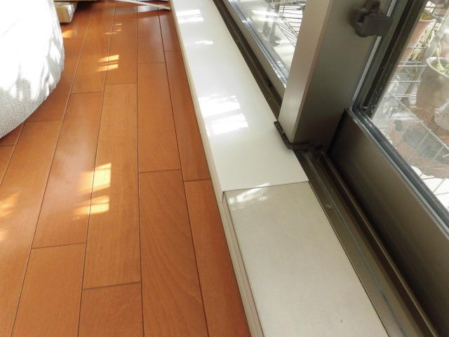 マンションの南側ベランダの窓枠の表面がひび割れていました。既存の窓枠を外さず表面にカバー材を貼る簡単リフォームを行いました。