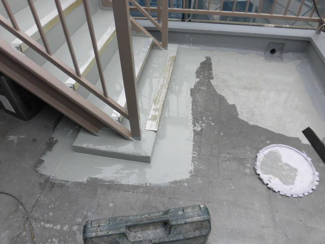 鉄骨ALC造の店舗兼共同住宅の外廻り(外壁・屋上)防水工事を行いました。外壁はシリコン塗装を屋上はウレタン防水を塗布しました。