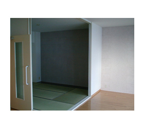 床に大型タイルを壁にはエコカラットを貼り、モダンで快適な住空間を作りました。