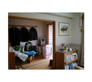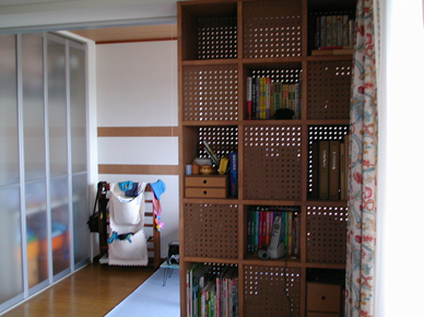 光が通る収納棚やスクリーンパーティションを使い、お子さんの様子が分かります。