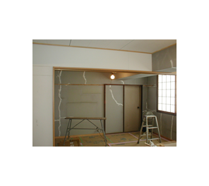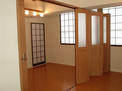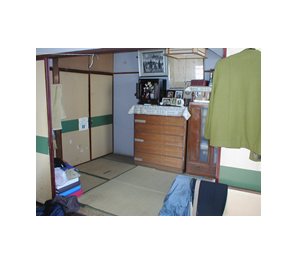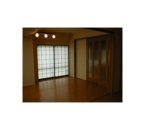 和室から洋室に衣替えし、天井・壁面を全面塗装しました。間仕切も襖からガラス入折戸に変え、広く明るく使えます。障子は使っていたものに色をつけ趣きのある仕上げにしました。