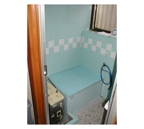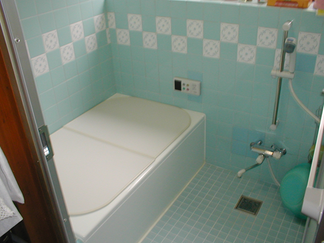 風呂釜を外置き式に取り替え、空いたスペースにこれまでより大きい浴槽を設置しました。床も新しいタイルを貼りました。