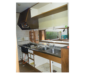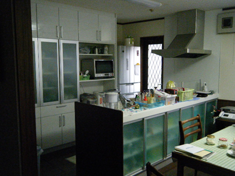 キッチンとリビングの間仕切壁を取り除き、対面式のキッチンとなりました。ご家族の顔も見えて安心です。