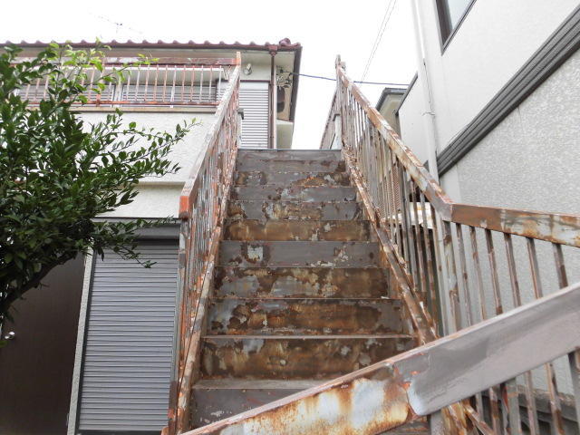 鉄製手摺は錆が進み、穴が開いてしまうことがよくあります。早めの塗替えが大事です。