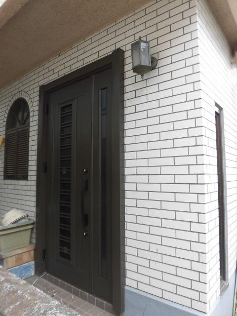 リフォーム用玄関ドアのリシェントへのリフォームです。 リシェントは気密性が高くなるので、採風機能があるタイプを採用しました。