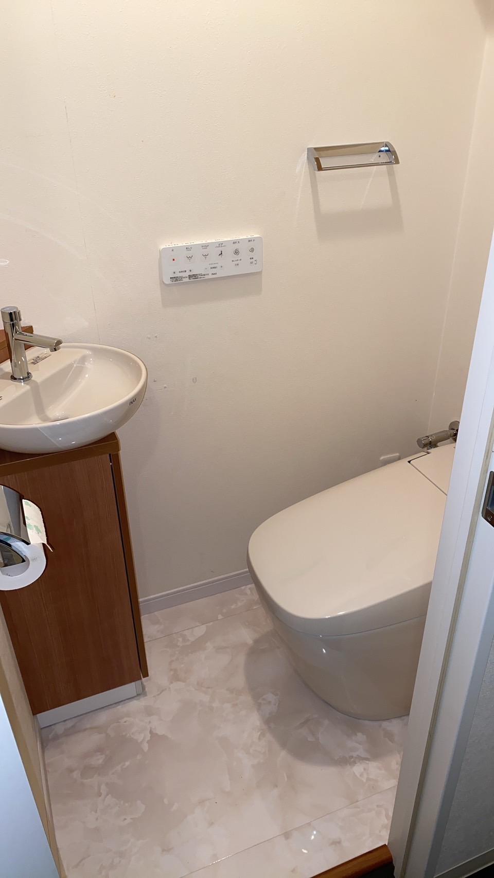 おしゃれな事務所に違和感のないリフォームになったと思います。 少し狭いですが、トイレの室内で手洗いができることで、お客様に使いやすいトイレになったようです。