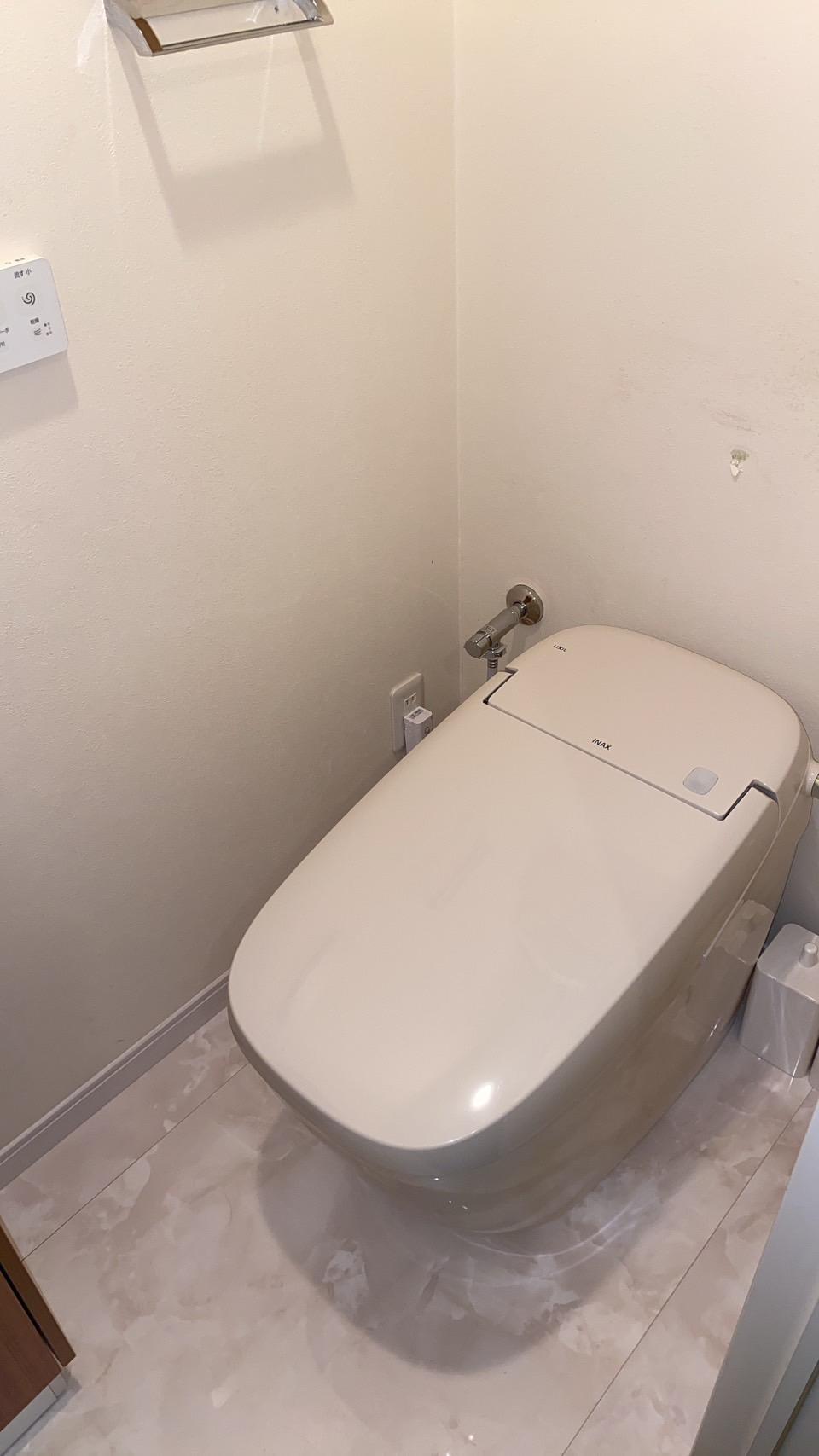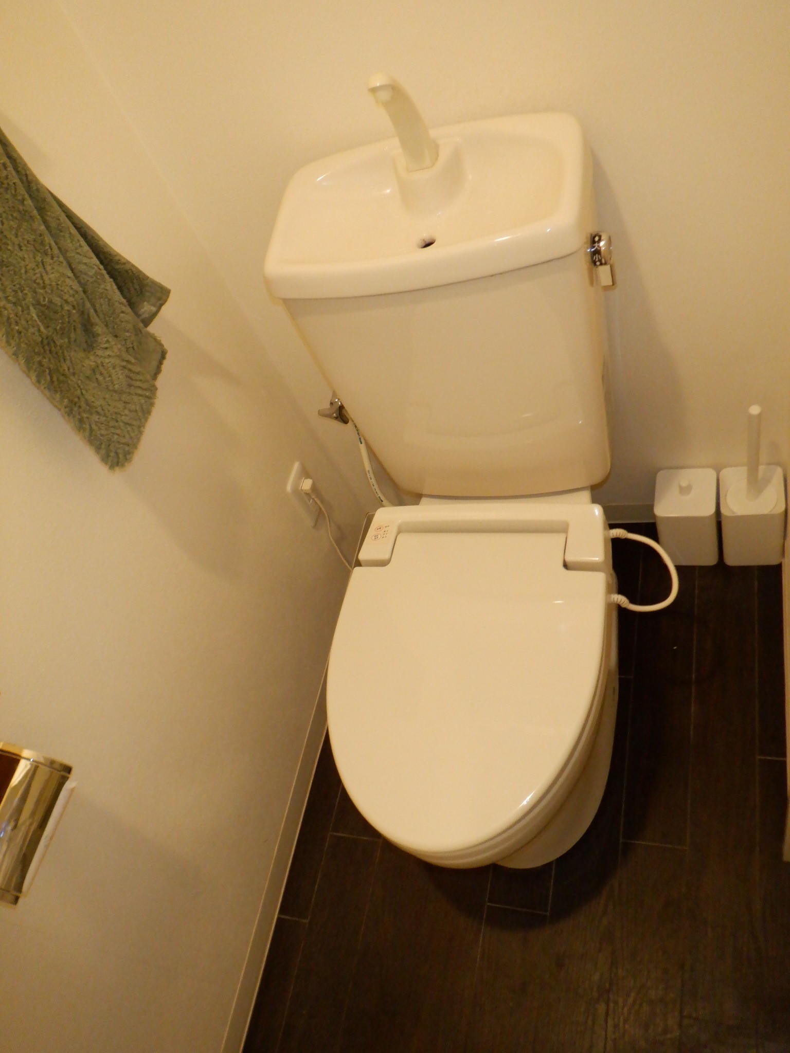 デザイナー事務所のトイレリフォームです。 お客様が落ち着いて使えるように手洗器を設け、静音機能が高いサティスGを採用しました。