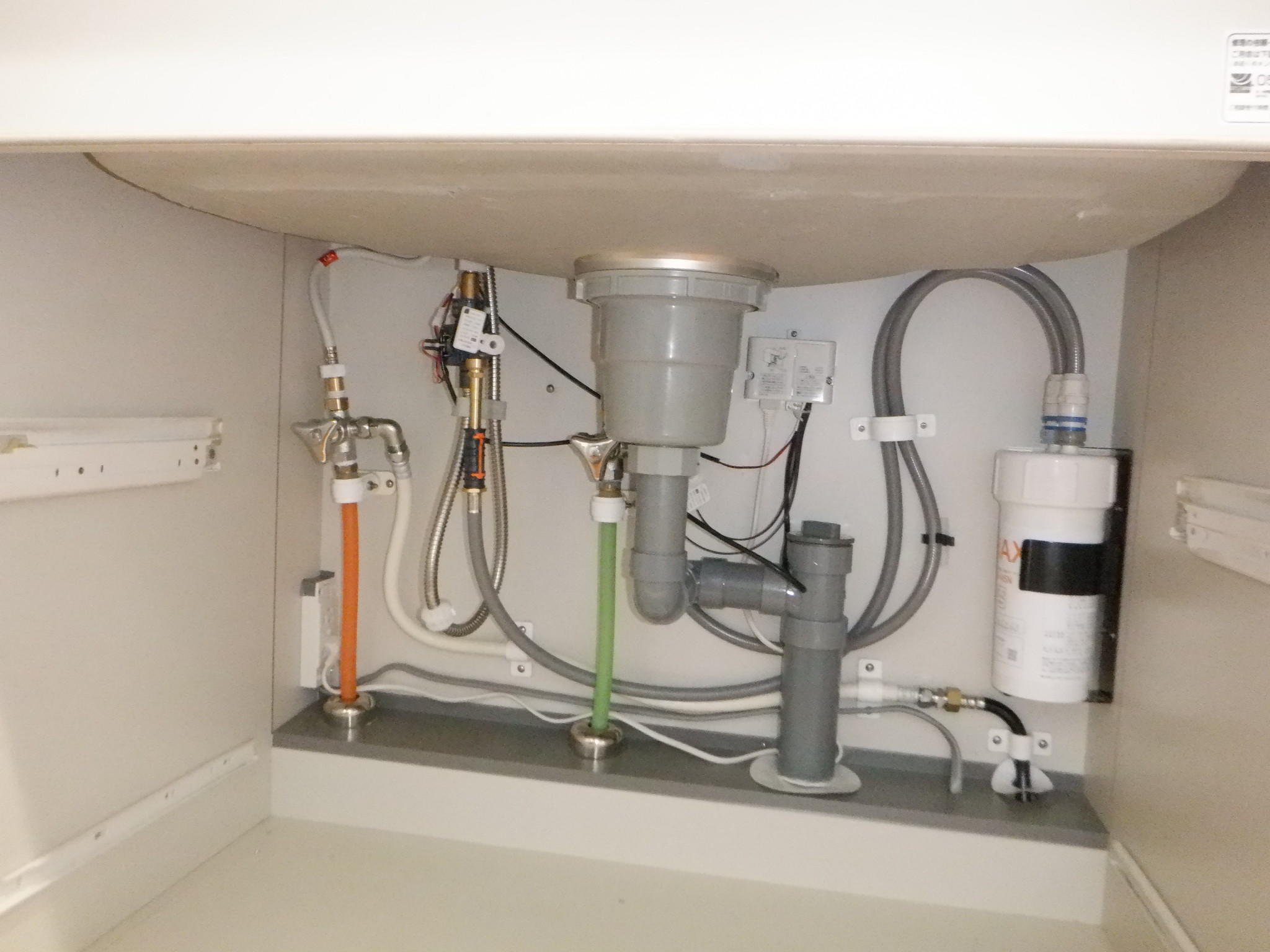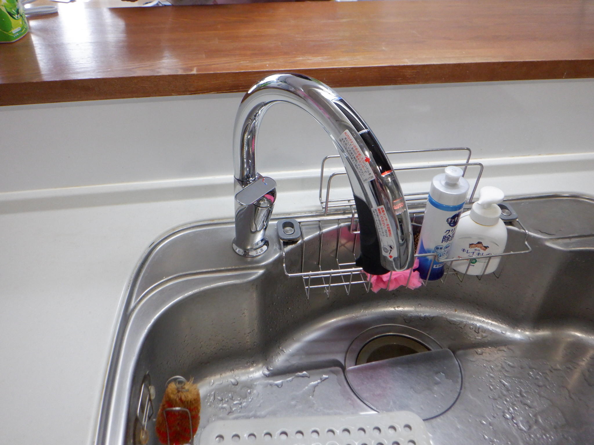 システムキッチンの水栓をタッチレス水栓ナビッシュへ交換しました。 電源は流し台に隣接している食器洗浄機から分岐しました。