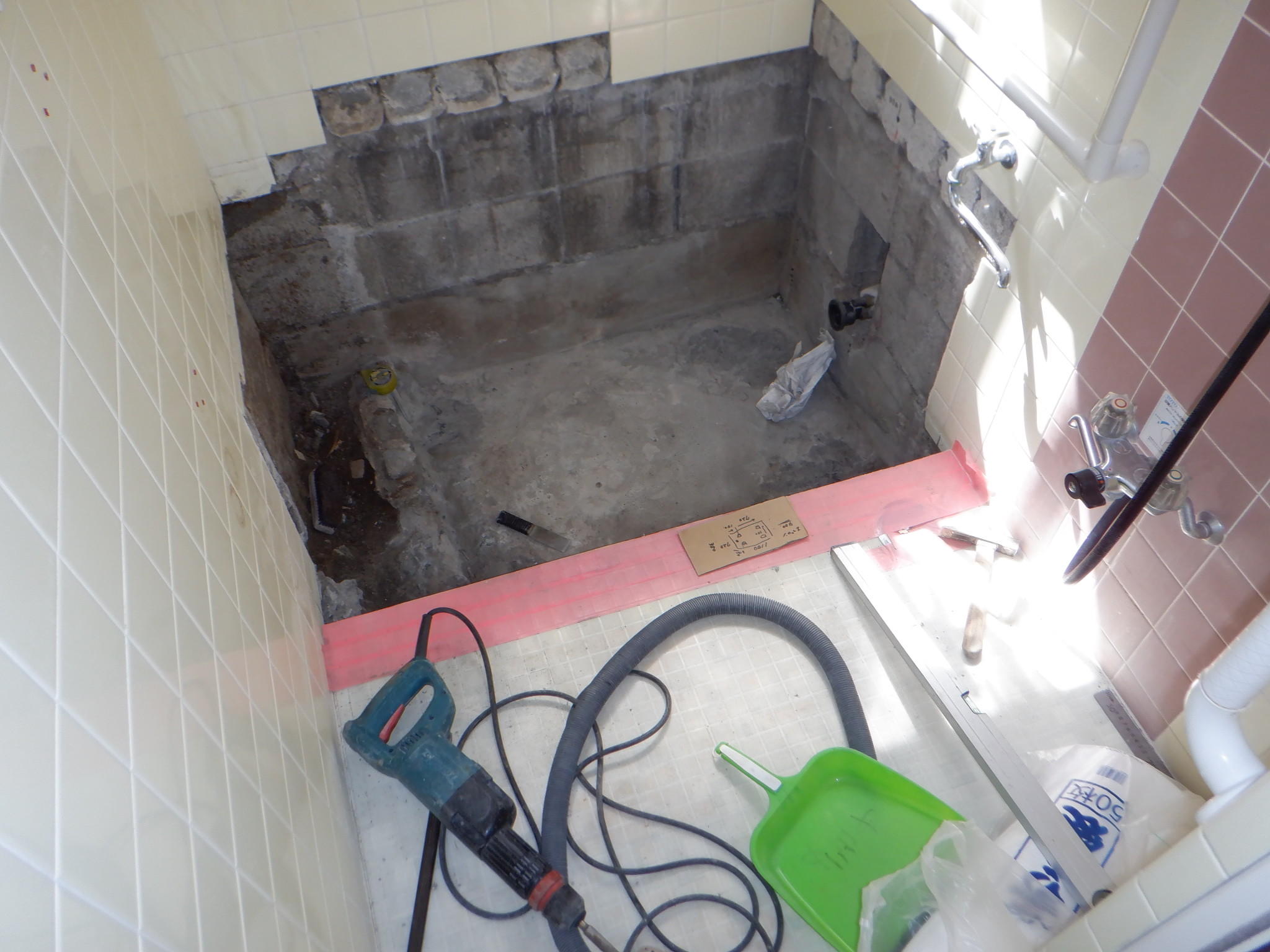 タイル張りで在来工法の浴室の、浴槽交換を行いました。