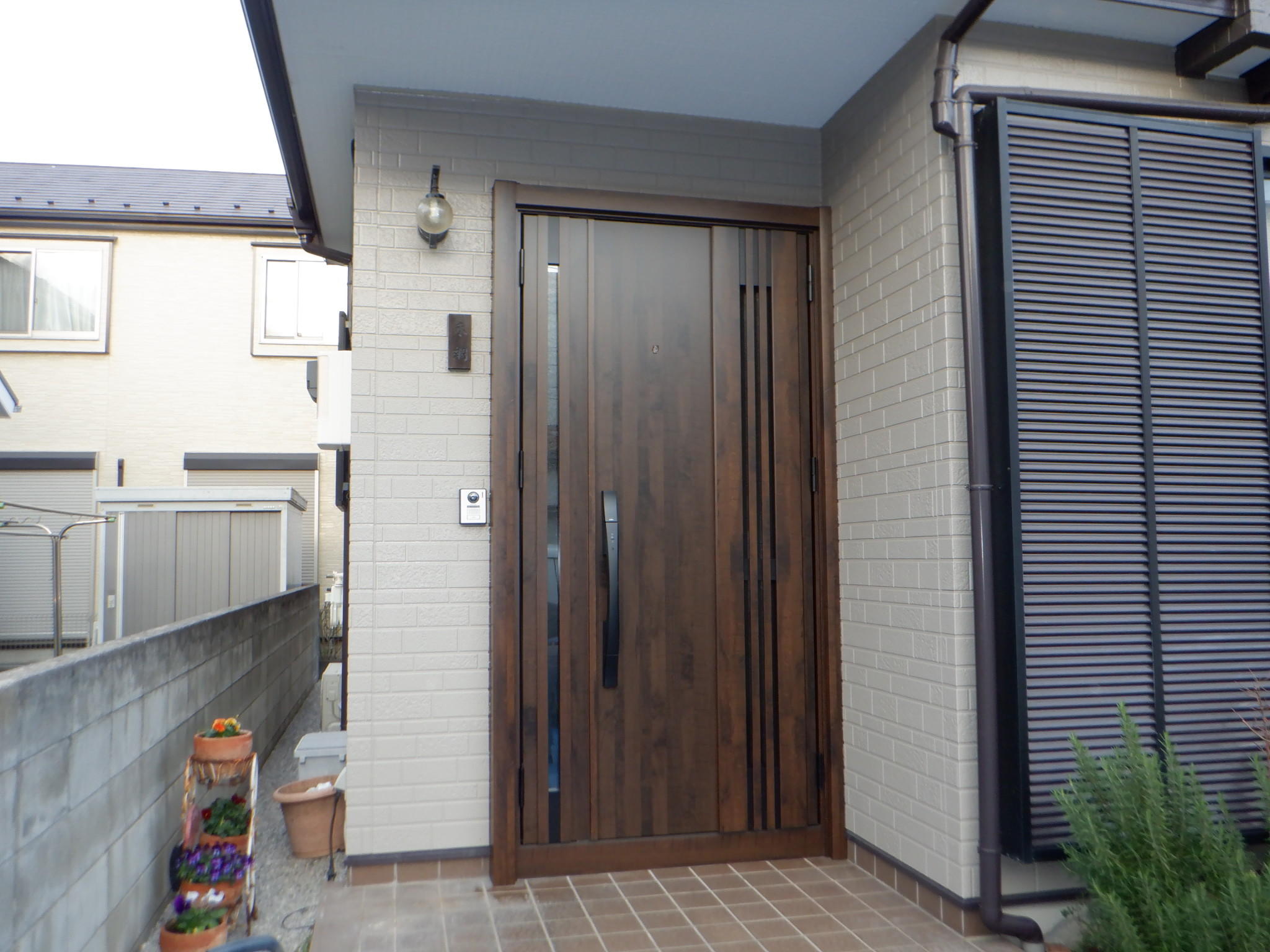 最新の施解錠を行うシステム「FamiLock」を採用した玄関ドア、リシェントの交換リフォームです。 リモコンやカードキー、タグキーが使え、家族一人ひとりがカギのタイプを選べました。