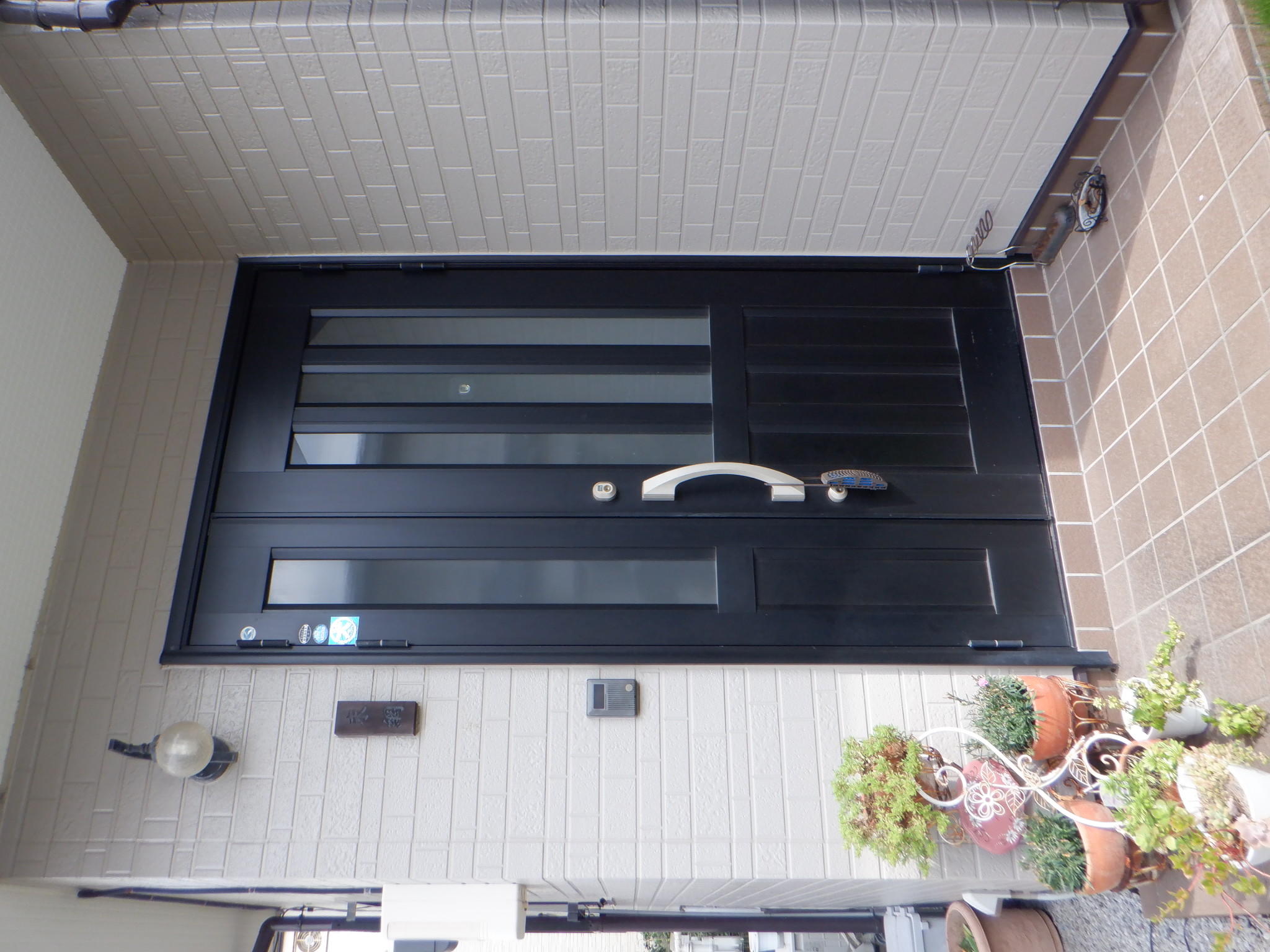 FamiLockシステムを始め、扉の下部に扉と同色の巾木を取り付けを採用しました。 リフォーム用玄関ドア、リシェントの進化した内容でした。