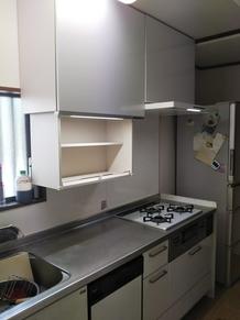 江戸川区 システムキッチンのコンロ・換気扇入替及び電動吊戸棚設置