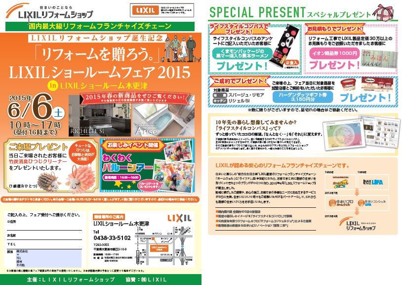 君津市 木更津市 リフォーム LIXILショールームフェア『リフォームを贈ろう』