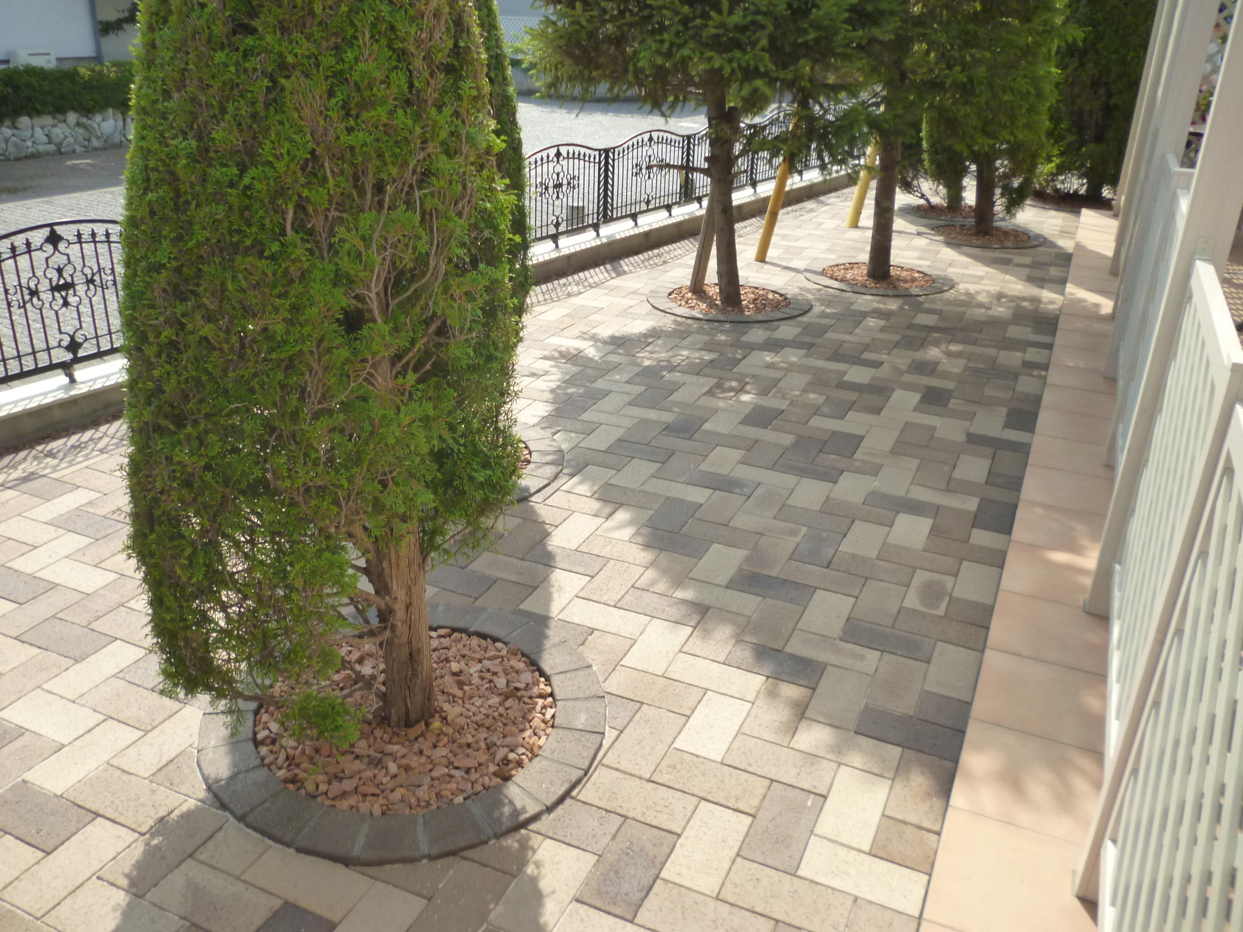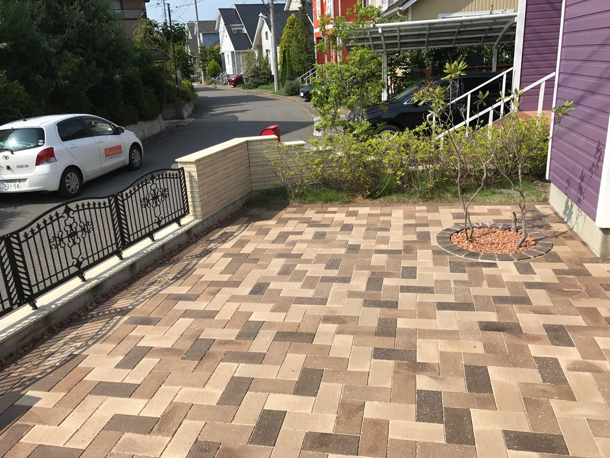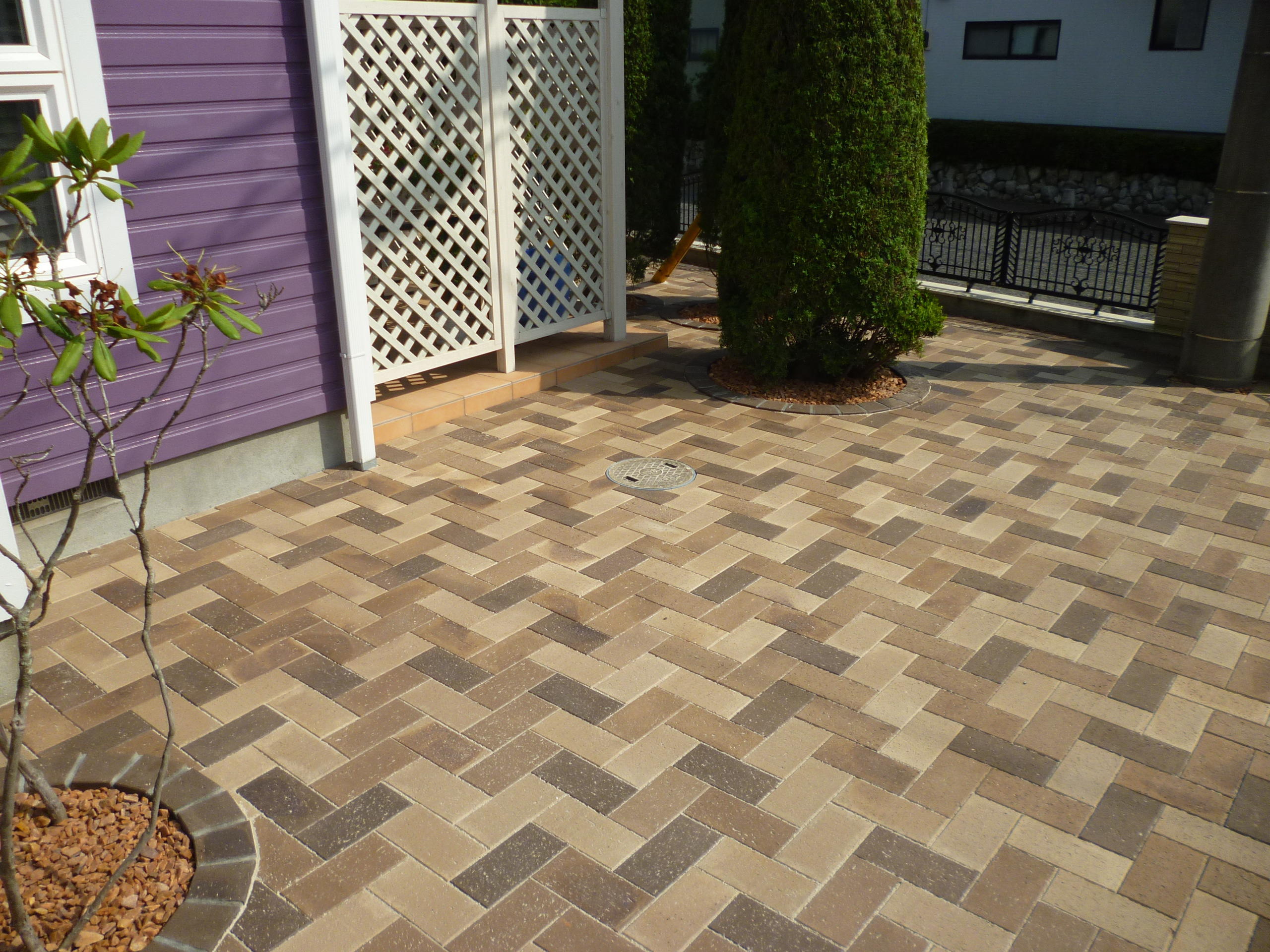 もともと一面、芝生のお庭。定期的なお手入れが大変になってきたので、レンガのデザイン敷きで改修して美観UPとお手入れの手間を大幅に簡素化しました。