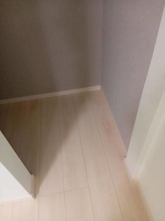 また、室内とクローゼット中の壁紙の色を変えたことで、同じ部屋でありながら空間に境界線が生まれ、グレーの壁紙がアクセントになってとっても可愛いです。