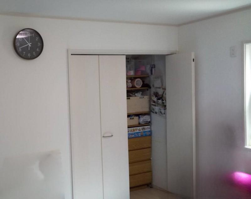 折戸扉のクローゼットをウォークインクローゼットにして、壁掛けテレビを設置したいとご依頼をいただきました。