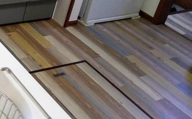 フロアタイルは本物さながらで、丈夫でキズに強く、拭き掃除など気軽にお手入れができるのでキッチンや水まわり、玄関など汚れが気になるところにおすすめです。デザインのバリエーションも豊富なので、なりたいお部屋の雰囲気に合わせて選ぶのも楽しいですよね♪こちらのキッチンも楽しく明るい雰囲気が伝わってきます。