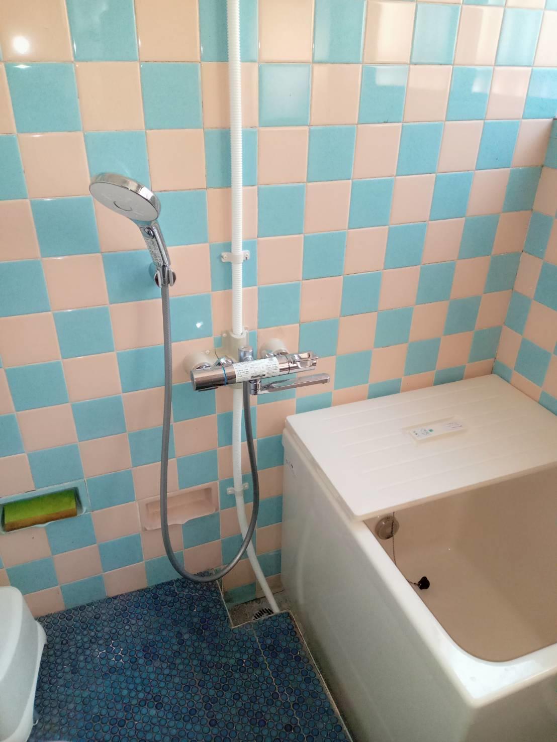 壁床タイルのレトロな雰囲気がお気に入りだそうで、そこは残して浴槽を新しく、できるだけコンパクトにしたいとのご要望をいただき、今回は豊富なサイズのLIXIL「ポリエック」と、給湯器にはノーリツの「エコジョーズ」を採用しました。エコジョーズは少ないガスで効率よくお湯を沸かすことができ、省エネルギーに貢献できる給湯器です。ちなみに、同じ給湯器でもエコキュートはガスではなく電気を燃料としてお湯を沸かすという違いがあります。