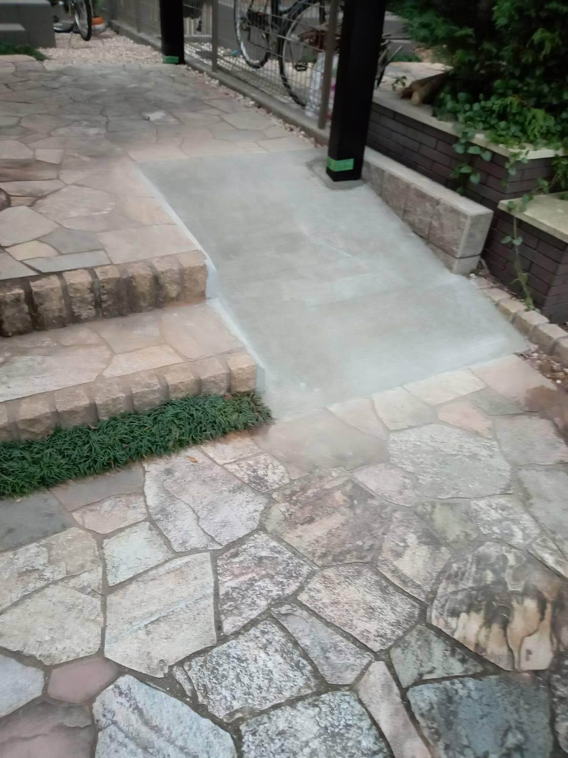 そこで今回は花壇を撤去し、自転車用にスロープを造ることにしました!自転車を押して上がることを考慮し、なおかつ隣の階段との段差に不自然さが出ないようにスロープの確度を調整して仕上げました。スロープのおかげでスムーズに自転車を運ぶことができるようになりました!