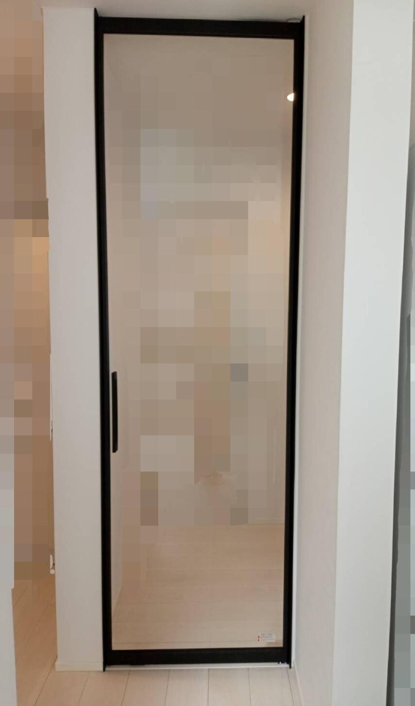 リフォームは新築のようなフルオーダーメイドではないので、既存枠のサイズに合わせて室内ドアをオーダーし、取付けるのが一般的です。ラフィスは高さは最大2700㎜まで1㎜単位で寸法の指定が可能(※ライン枠のみ)なのですが、幅はサイズが決まっているので変更することができない商品となり、残念ながら既存枠とラフィスの幅とはサイズが合いませんでした…。