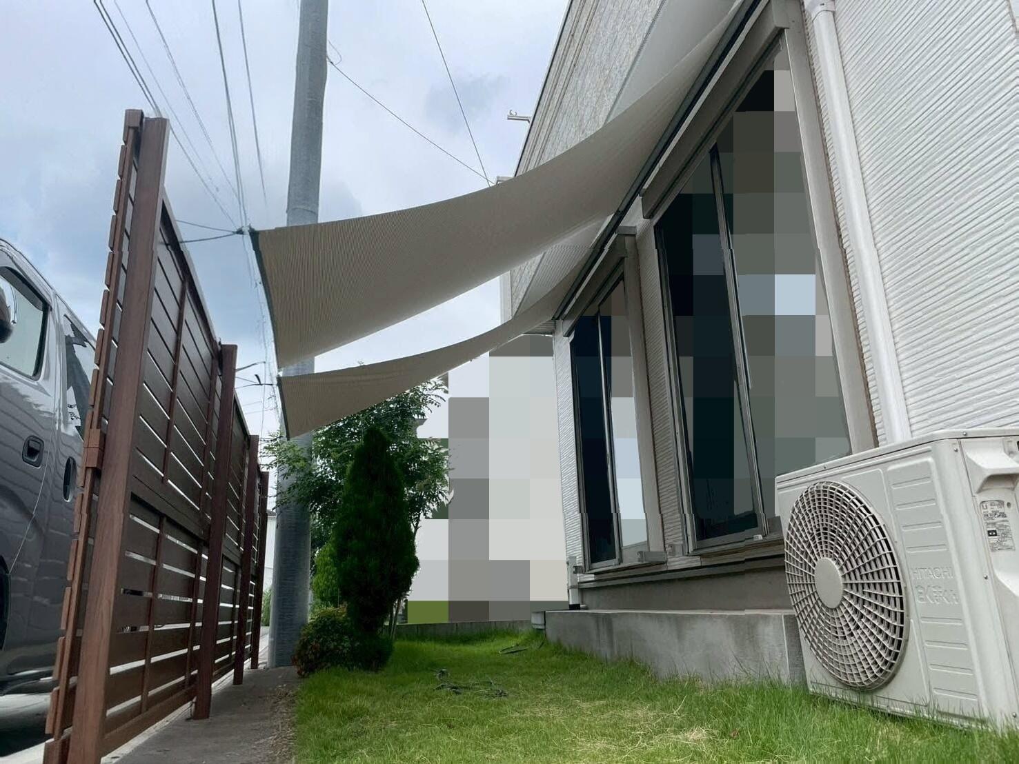道路に面した南向きのお部屋で日差しが強く、暑さにお悩みなお客様から日差しと目隠し対策にシェードをつけたいとご依頼いただきました。