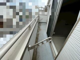 ご一緒に2階のベランダに物干しの設置もご依頼いただきました!物干しには川口技研の腰壁用ホスクリーン HD型を採用しています。こちらは洗濯物を外から見えずらい位置に干すことができるのがポイント♪アームは2段階で角度調節が可能で、竿を掛けたまま角度調整ができるので竿を外す手間がありません。外から洗濯物が見えないので、美観的にも防犯にも効果的だと思います。