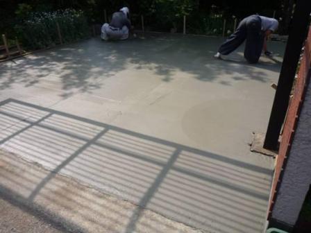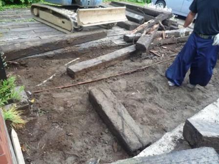 今までは枕木が敷いてありました。趣があり素敵ですが、経年劣化に伴い腐食してしまい、躓く事があるとの事。このお悩みを解決すべく、コンクリートを打つ事にしました。
