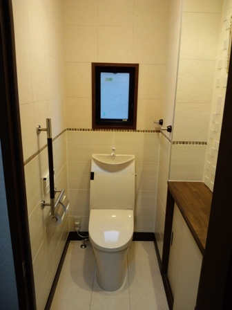 トイレはINAX「アステオ」をご採用頂きました。 今回リフォームをするにあたり、お客様からご希望をお伺いしたところ、 ①デパートのようにキレイ ②普段と違う空間 ③湿気が多いのでどうにかしたい。との事でした。