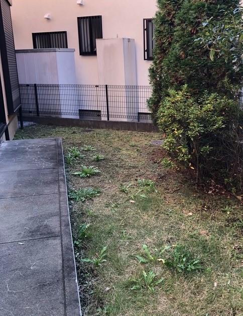 雑草のお手入れにお困りだった事、お隣からの視線が気になるので目隠しフェンスを設置したいとの事でご相談をいただきました。
