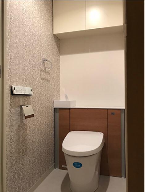 内装仕上げはお客さまご自身が選ばれました。 アクセントクロスで、センスの良いスタイリッシュなトイレに生まれ変わりました!