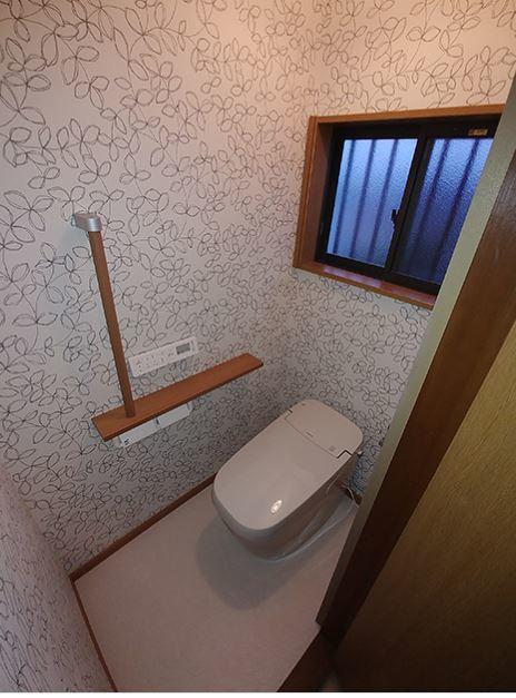 当初は便器のみでの交換希望でしたが、色々とお話を進めていく上で、現在必要はないが、将来の事を考えて手摺が1本あった方が安心というお声から、今後どこでも手すりが取り付けれるように壁の下地から替える工事を提案させていただき、トイレ全面改装になりました。