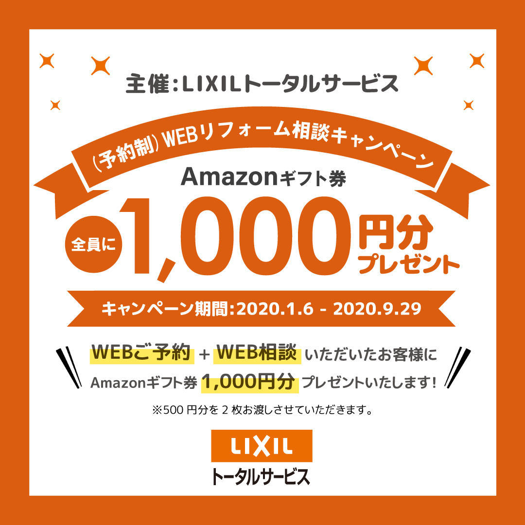 WEB予約+WEBリフォーム相談のお客さまへ、「Amazonギフト券 1,000円分」プレゼント中です!!