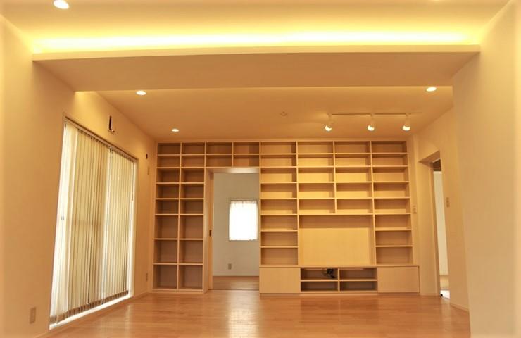 たくさんあった書籍類がすっきり収納できました。 床材の質感も良く、冬が楽しみです。 提案してもらった天井間接照明は、友人からもかっこいいと好評です。