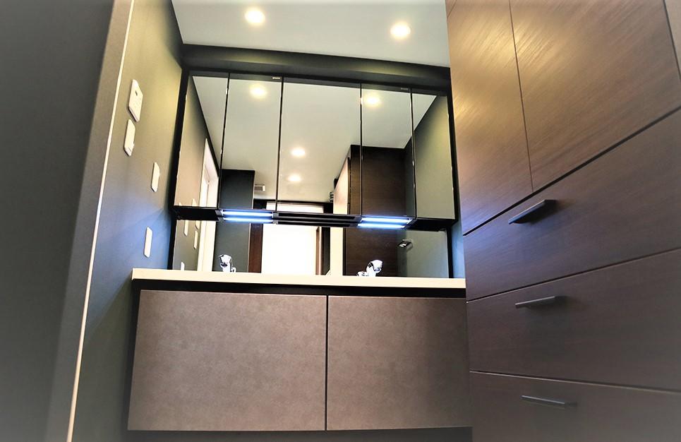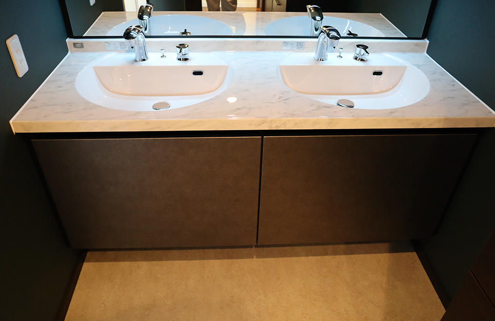 洗面室は、お子様と一緒に使えるように2ボールを採用し、広々した洗面空間に仕上げました。